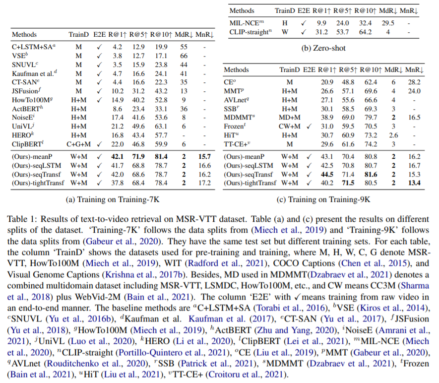 - video-text retrieval 에서 image feature 는 쓸 만하다.