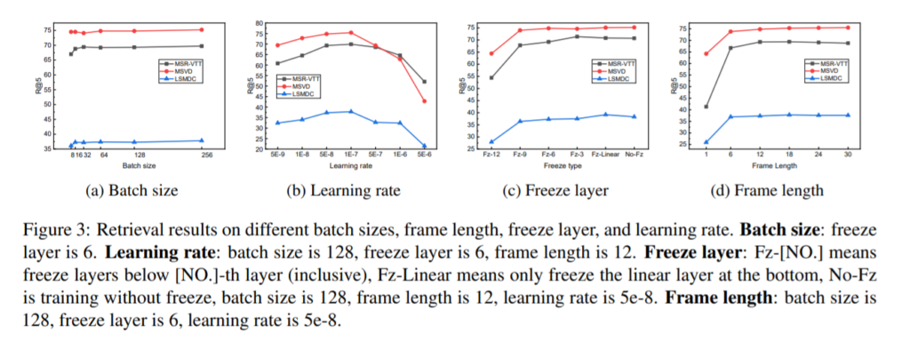 - video-text retrieval 을 할 때, CLIP 은 learning rate 에 sensitive 하다.