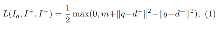 q는 R-MAC descriptor이고, I는 이미지를 뜻합니다. d는 descroptor를 뜻하고요. 위 수식에서 마진 m을 가진 상태에서 Query 이미지와 Relevant 이미지, Irrelvant 이미지간의 표현력을 학습합니다.