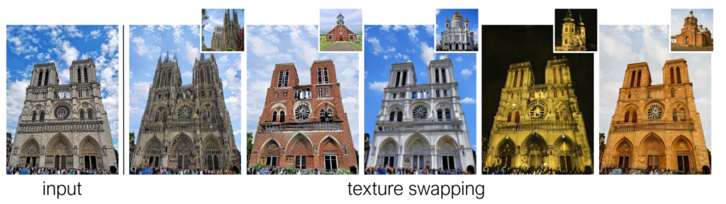 그림1. 저자가 제안하는 방법론의 texture swapping 예시들.