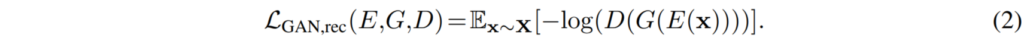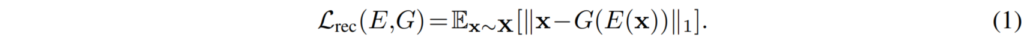여기서 x는 입력 영상, E는 Encoder, G는 Generator를 의미합니다. 차례대로 Encoder 통과하고 그 결과값을 그대로 Generator로 태워서 생성된 값을 다시 입력 영상과 L1 loss로 비교합니다.