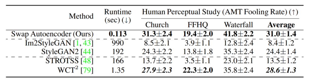 아무튼 FFHQ 데이터 셋을 제외하고는 모든 데이터 셋에서 자신들이 가장 좋은 성능을 보였다고 합니다. 보통 이렇게 사람의 주관이 들어간 평가 방식은 별로 신뢰하고 싶진 않지만, 해당 논문에서는 총 1000명을 대상으로 진행을 하였기 때문에 믿을만 하다고 주장합니다. (하긴 주변 친구가 1000명이 아닌 이상 조작은 힘들겠죠?)
