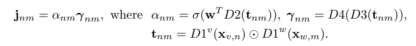 fully-connceted (dense) layer (Dk) , Convolution layer (Convk), 그리고 attention weights a, represenation r 을 이용해서, 앞서 얻은 sequential 한 feature 간의 joint embedding 을 나타내는 JST 를 얻습니다.
