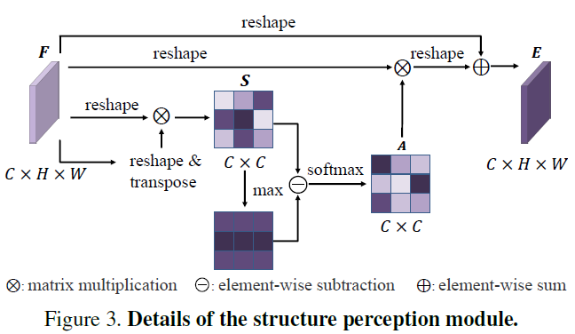 - Structure Perception Model (SPM)을 제안하며 이 모듈은 Self-Attention 방식(?) 으로 영상 정체의 structure 정보를 강화하기 위해서 제안 되었음.