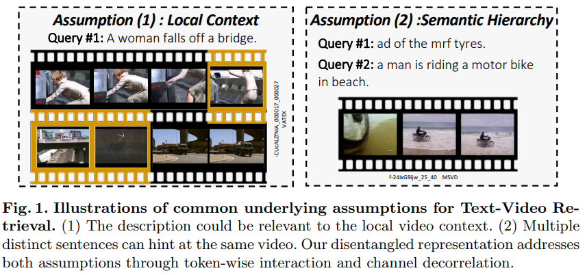 본 논문에서는 이러한 이전 연구들을 바탕으로 Text-Video Retreival 에 대해 두 가지 가정을 했습니다.