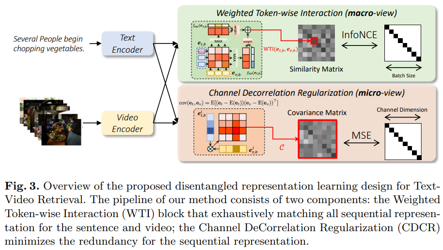 Contrastive loss 는 global similarity 를 최적화하기 위한 “a macro objective” 를 제공합니다. 이때, 우리가 풀려는 문제가 multi-modality retrieval 인 건 생각해보면, 그러니까 이러한 문제에서 필요한 expression 을 생각해보면, 좀 더 “micro-views” 으로부터 얻은 semantic information 을 필요로 합니다. 예시를 들자면, channel-level 말입니다. 그리고 이걸 CDCR loss 에서 고려를 해줍니다.