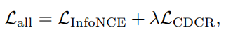 - InfoNCE Loss의 \tau = 100, CDCR Loss의 \alpha = 0.06, Total Loss의 \gamma = 0.001