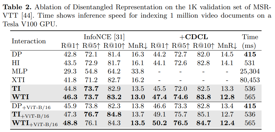 - Fixed caption length : 32 (MSR-VTT, MSVD, VATEX, LSMDC), 64 (ActivityNet, DiDeMo)