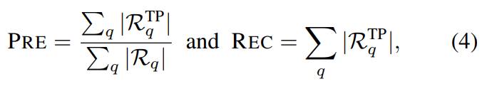 그래서 논문 저자들은 Precision과 Recall을 위와 같이 재정의하여 평가에 사용했습니다. 물론 mAP로의 실험도 수행했고요. 위 평가 메트릭에서 R_q는 전체 검색 결과이고, TP가 붙은 경우에는 Ture Positive를 의미하는데 이 평가 방식으로 제안한다고 합니다.