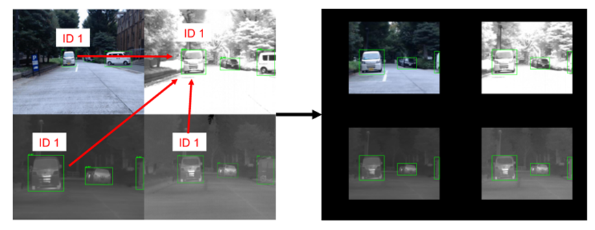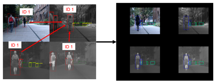 해당 연구에서 서로 다른 파장의 카메라의 이미지 정합을 위해 사용한 방법은 바로 사람이 직접 수동으로 어노테이션을 수행하며, 이때 각 박스마다 ID를 적용하여 바운딩된 박스와 ID를 가지고 하나의 좌표(논문에서는 NIR을 기준)로 모두 변형합니다. 이때, 아래 그림과 같이 Homography matrix를 사용하게 되는데 단순히 H-matrix로는 온전히 와핑이 진행되지 않을 수 있습니다. 그럼 이러한 것들은 어떻게 했을까요?