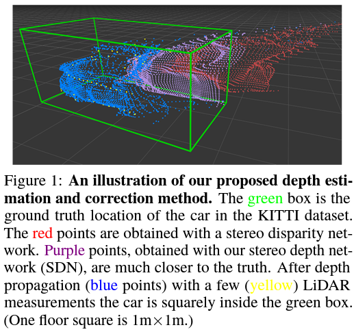 이 이후의 과정은 나중에 자세히 추가하도록 하겠습니다만, 간단히 설명하자면 matching된 stereo depth point 간에 weight를 매긴후 실제 LiDAR 와 가장 가까운 point와 weight 가 높은 point 까지를 LiDAR 방향으로 이동시키는 과정을 거칩니다. 이를 통해 정확한 depth point cloud를 얻습니다.