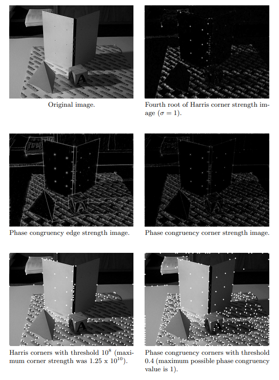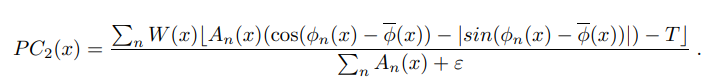이 수식은 앞서 설명한 사람의 시각과 유사한 특징을 갖는다고 발표한 네이처 논문에서 정의됐으나, 해당 논문의 저자는 이러한 수식이 노이즈에 취약하며 좋은 localization을 제공하지 못한다고 이야기 합니다. 따라서 해당 논문의 저자는 이전 연구에서 기존 phase congruency 계산 방식을 개선한 새로운 phase congruency 계산식을 제안합니다.