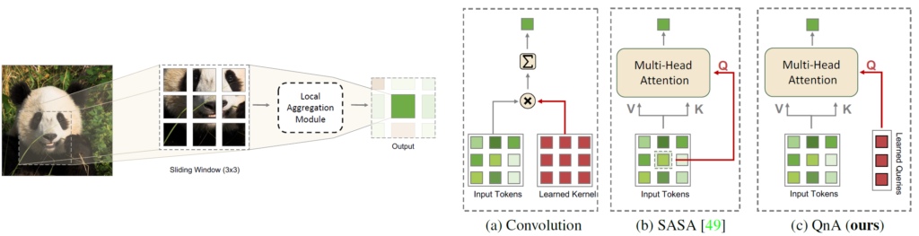 그래서 저자는 이러한 transformer의 연산량은 획기적으로 줄이면서 바로 위에서 언급한 convolution의 성질들 그리고 transformer의 self-attention을 통한 뛰어난 feature 표현력 모두 챙기는 그런 새로운 aggregation layer를 제안한다고 합니다.