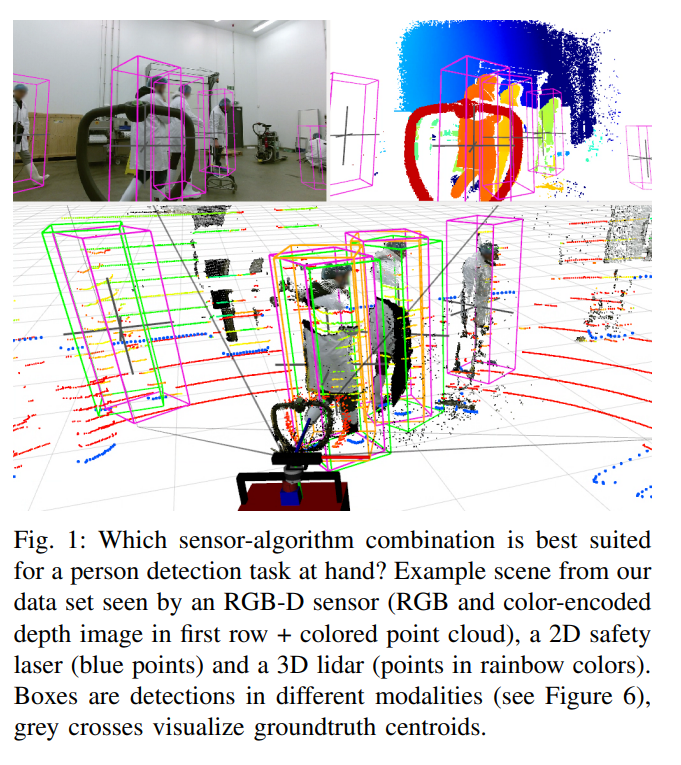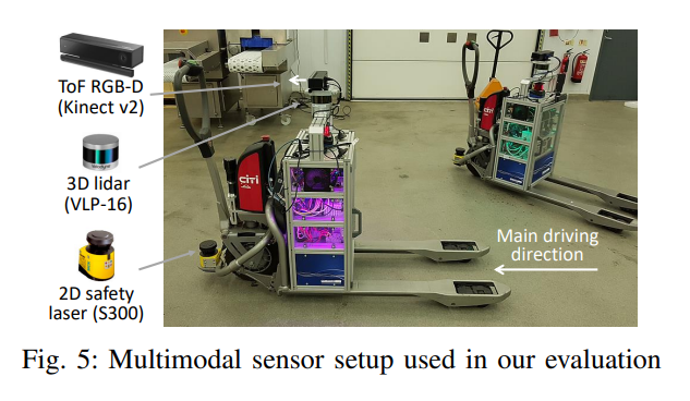 좀 더 구체적으로 페이퍼에서는 멀티모달 센서들을 사용하여 intralogistics에서 사람 검출을 수행하는데, 어떠한 멀티모달 센서 조합이 가장 최적의 솔루션이 될까? 라는 질문에 대답하기 위해 연구를 진행합니다.