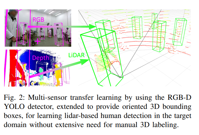 즉, 본 논문에서는 멀티모달 센서들(2D 라이다, 3D 라이다, RGB-D)센서와 SOTA 알고리즘들을 적절히 활용하여 도메인이 바뀔때 어떠한 조합이 가장 좋은지에 대한 분석을 수행합니다. 그리고, 기존에 제안했던 yolo기반의 2.5D 검출기를 확장하여 도메인이 바뀔때 어떤식으로 활용할 수 있는지 보여줍니다.