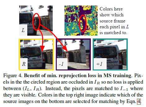 • pixel의 occlusion에 강인하도록 설계된 minimum reprojection loss