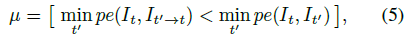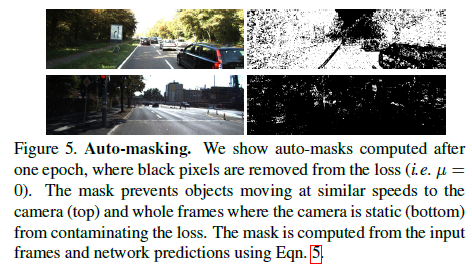 • camera의 motion가정을 위반하는 pixel을 무시하기 위한 auto-masking loss