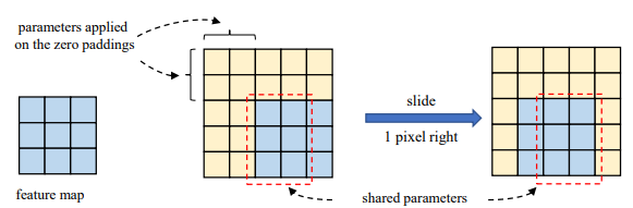 그렇다면 이렇게 성능 향상이 발생할 수 있었던 이유는 무엇일까요? 저자는 kernel size가 크게 될 경우에는 CNN의 translation equivariance가 엄격하게 지켜지지 않는다고 주장합니다. 즉 위의 그림처럼 인접한 공간에서의 두 출력은 커널 가중치의 일부만을 공유하게 됩니다.
