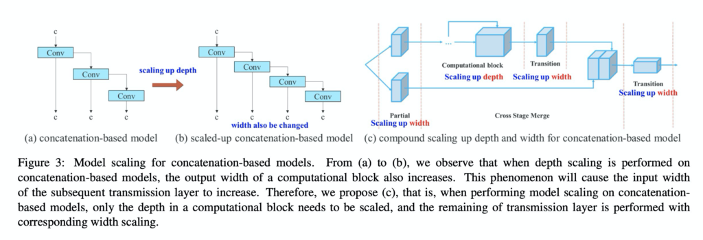 욜로 v7에서는 위의 그림 (c)와 같이 다양한 model scaling 기법을 혼용하여 사용합니다. 저는 개인적으로 해당 부분을 보고 이해가 안가서 구글링해서 참고자료(그림)을 보고 이해하였습니다.