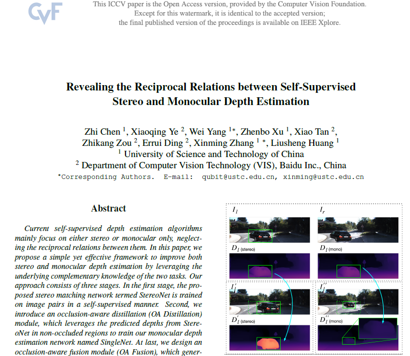 오늘 리뷰할 논문은 ICCV 2021년에 게재된 ‘Revealing the Reciprocal Relations between Self-Supervised Stereo and Monocular Depth Estimation’ 이라는 논문입니다.