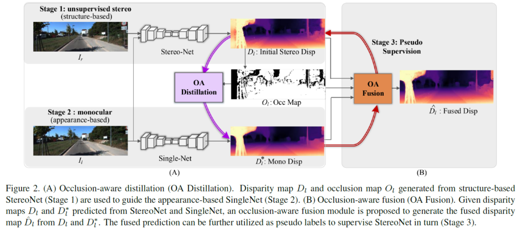 또한 mono image 에 대해서 학습을 진행하는 SingleNet 이 존재합니다. - occlusion-aware distillation (OA Distillation) 이라는 모듈을 제안합니다.