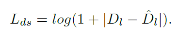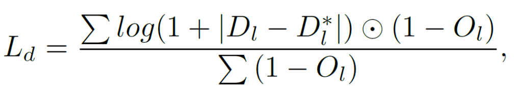 O_l=0, 즉 occlusion이 아닌 영역에서 D_l과 {D_l}^*의 L1 loss에 log를 씌운 loss가 계산되는 것을 알 수 있습니다.
