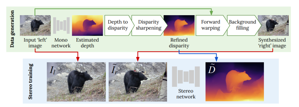 - stereo matching model의 입력이 될 stereo image를 생성하는 새로운 pipeline을 제시함