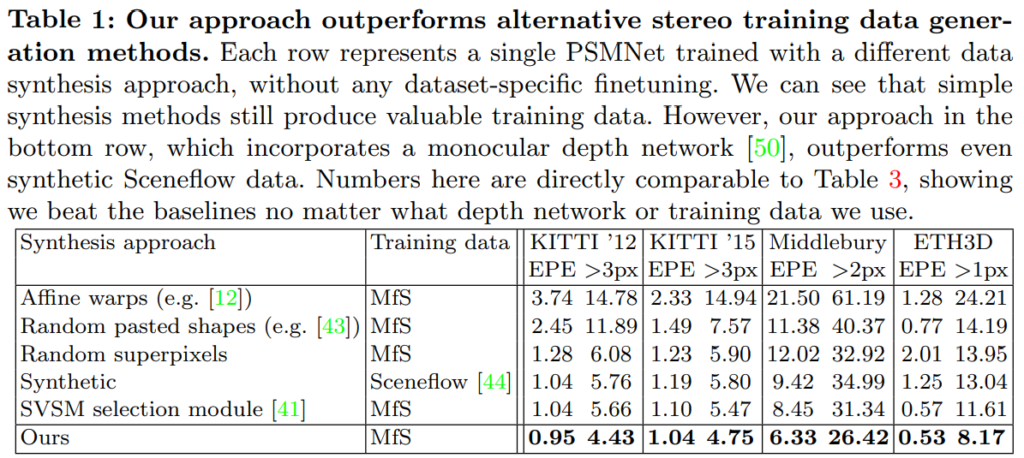 영상에서 Depth를 추정할경우 occlusion 이나 collision 등의 이유로 인해서 값이 이상한 depth 가 추정됩니다. 이때 forward warping 을 통해서 오른쪽 영상을 생성하면 해당 부분을 검정색으로 나오게 되는데 이러한 부분으로인해서 인공적인 disparity가 예측되는 문제가 발생합니다. 이러한 문제를 해결하기위해서 이 논문에서는 cutmix 와 같이 데이터 중에서 다른 임의의 영상을 붙혀넣어서 성능을 올렸다고 합니다.