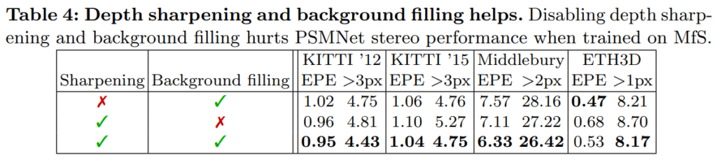 Disparity가 잘못 나온 부분에 대해서 “이 논문에서는 cutmix 와 같이 데이터 중에서 다른 임의의 영상을 붙혀넣어서 성능을 올렸다고 합니다.” 라고 리뷰에 적어주셨는데 그 밑에 그림에는 disparity sharpening?을 통해서 해결했다는 얘기가 나오네요.