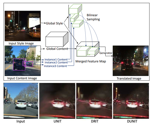 그래서 이러한 instance level까지 translation을 잘 해보자라는 논문 분야들이 나오길 시작했고 이러한 분야를 Instance aware I2IT라고 한다고 합니다. Instance-aware I2IT의 가장 대표적인 방법론으로는 Object detection과 I2IT를 동시에 학습하는 DUNIT이라는 방법론이 있다고 합니다.