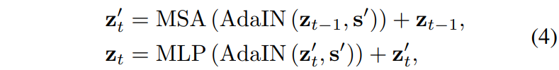 Transformer 내부에는 사실 ViT와 매우 동일하게 연산이 수행이 됩니다. 먼저 positional encoding vector를 더해주고 그 다음에는 MSA와 FFN을 태워주는 과정을 반복합니다. 여기서 다만 기존의 VIT는 Layer Normalization을 사용하였다면 해당 논문에서는 Image Translation이라는 분야에 맞게끔 Adaptive Instance Normalization으로 대체해주었다고 합니다.