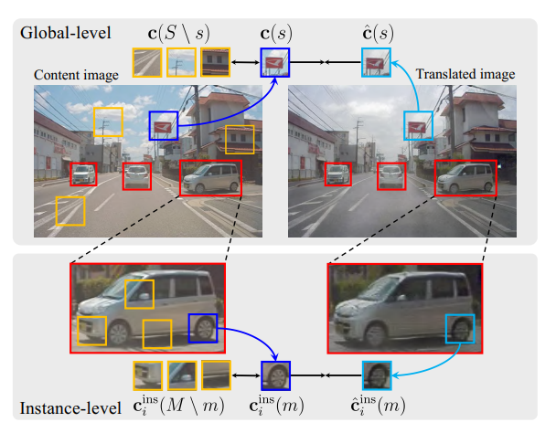 즉 영상 전체로만 봤을 때는 Y 도메인의 분위기(명도 분포, texture, color) 등이 잘 담겨있을지라도, 실제 영상 속 instance 레벨에서 보았을 때는 translation이 잘 되지 않았거나 또는 structure 들이 다 뭉게지는 등의 현상이 자주 발생하곤 했습니다.