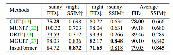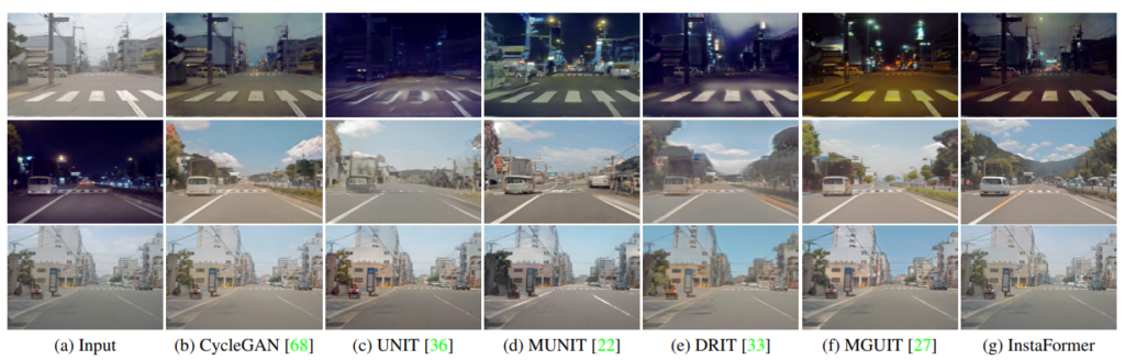 하지만 한가지 유의미하다고 생각이 드는 것은, transformer의 self-attention 연산은 결국 패치들 간에 correlation을 계산할 수 있다는 점에서, instance 영역과 전체 이미지 간의 correlation 뿐만 아니라 서로 다른 instance들 간의 correlation도 함께 고려해서 translation을 하기 때문에 보다 더 선명하고 잘 변환된 영상을 얻을 수 있다고 저자는 주장하고 있습니다.