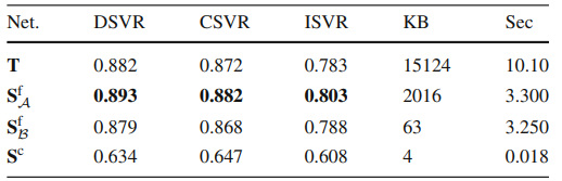 Table 1은 FIVR-5K에서 Teacher Network와 세 종류 Student Network 각각의 성능을 비교한 것입니다. 여기서 Teacher Network는 VCDB에서 supervision으로 학습된 것이며, 나머지 Student들은 Teacher로부터 DnS-100K 데이터 셋에서 distillation 된 성능입니다. 직접적으로 network 구조의 효력을 비교하려면 모두 VCDB에서 학습한 뒤 비교해야되지 않을까라고 생각하긴 하지만, 어쨌든 Fine-grained Attention Student가 가장 높은 성능을 보였다고 합니다.