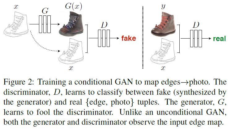 conditional GAN은 noise vector와 함께 observed image 를 추가로 사용합니다.