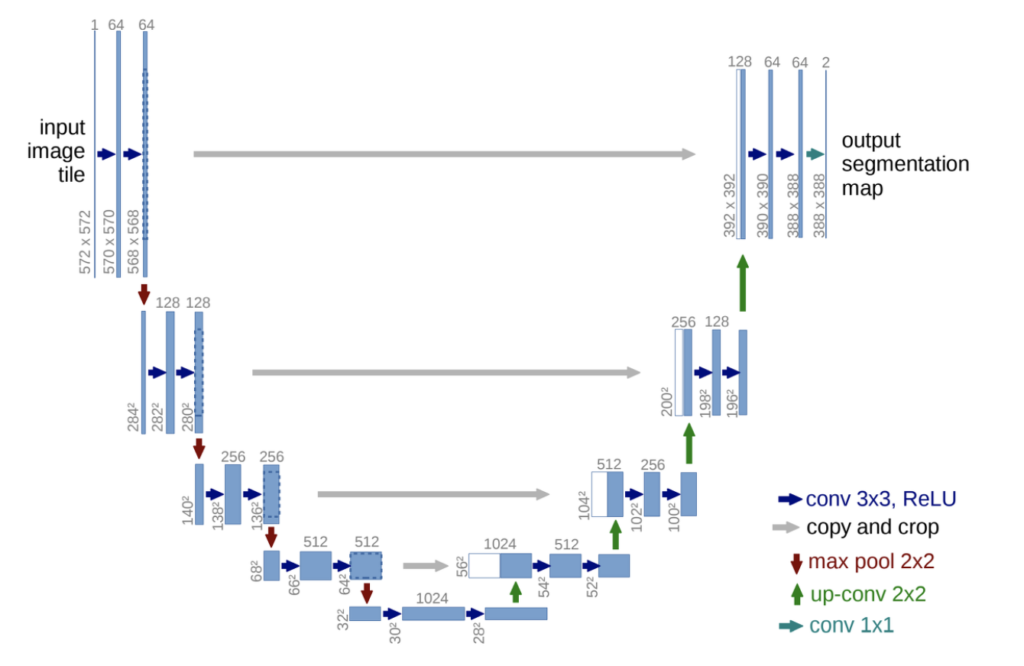 아래의 이미지처럼 U 모양의 architecture 형태로 인해 U-Net이라는 이름이 붙여진 것이 특징입니다.