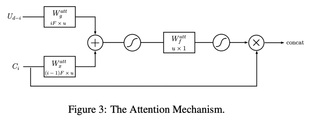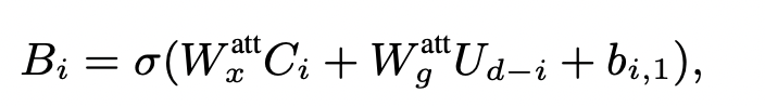 이를 모델링하기 위해, 커널 크기1의 추가적인 1차원 W_x, W_g가 필요하며, 이를 통해 어텐션 마스크를 설계하였습니다. 생각보다 간단한 방식입니다.