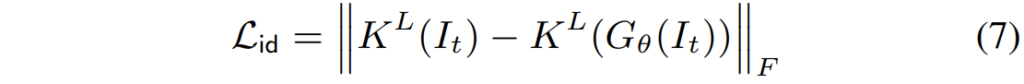id loss의 경우에는 일종의 regularization term으로 보시면 될 것 같은데, 만약 target 영상을 generator에 넣게 된다면, target image의 key값은 기존의 key 값과 동일해지도록 하는 것입니다. 사실 이렇게 하는 이유에 대해서는 논문에서 디테일하게 설명을 하지 않아서, 잘 모르겠네요ㅎㅎ..