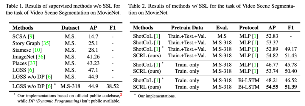 그래서 저자는 Scene의 Consistency를 기반으로 Positive sampling / Negative sampling을 할 수 있는 방식을 제안하였고 이를 downstream task인 Video Scene Segmentation에 효과적으로 전달할 수 있는 temporal modeling 방법까지 제안합니다. 마지막으로 fair하고 reasonable한 비교를 위해 pretraining과 evaluation단계에서 통일성을 가지고 평가를 진행했다고 합니다.