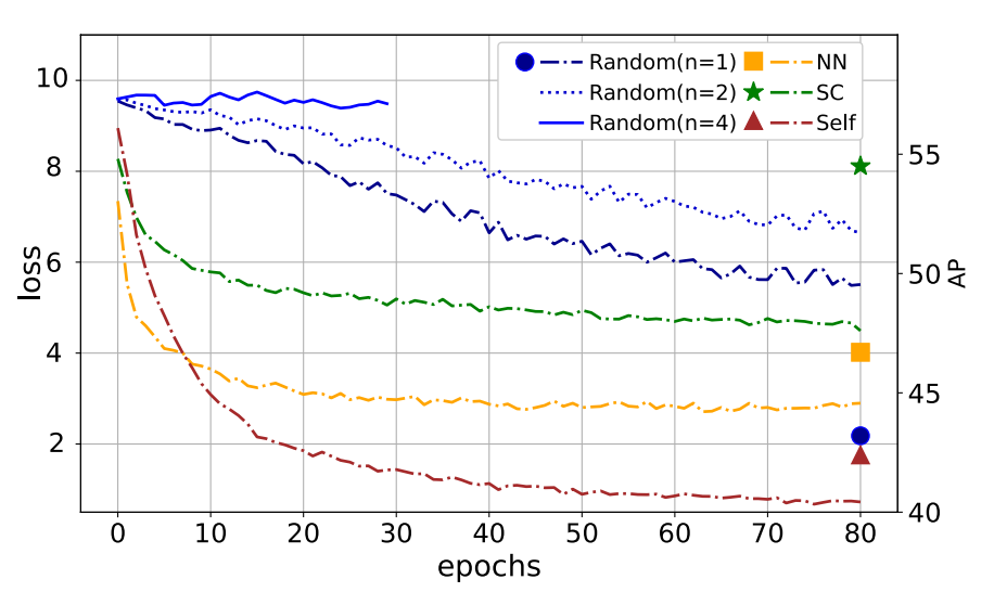 Nearest Neighbor(NN) 방식과 성능차이가 많이 나는 편은 아닌데 epoch별 Loss 함수를 그려보면 NN 방식이 빠르게 수렴하는 것을 확인할 수 있습니다. 이는 앞서 언급한대로 trival solution에 빠르게 수렴을 하기 때문에 upper bound가 생긴다고 볼 수 있습니다. Scene Consistency 방식은 적당한 convergence rate를 가지고 수렴하면서 가장 높은 성능을 보여주고 있습니다.
