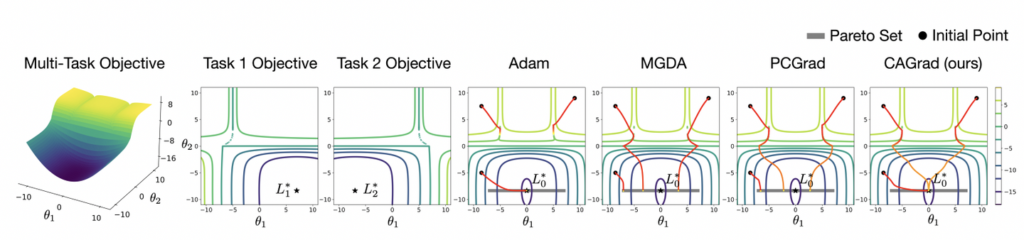 이를 해결하기 위해 기존 연구들은 그래디언트를 직접 수정한다거나, 휴리스틱하게 Objective를 수정하는 방식을 취했었다고 합니다. (전자의 경우 PCGrad가 그 대표인데, 후자는 아직 읽어본 적이 없어 추후 공부해보며 그 방식을 이해해봐야겠습니다)