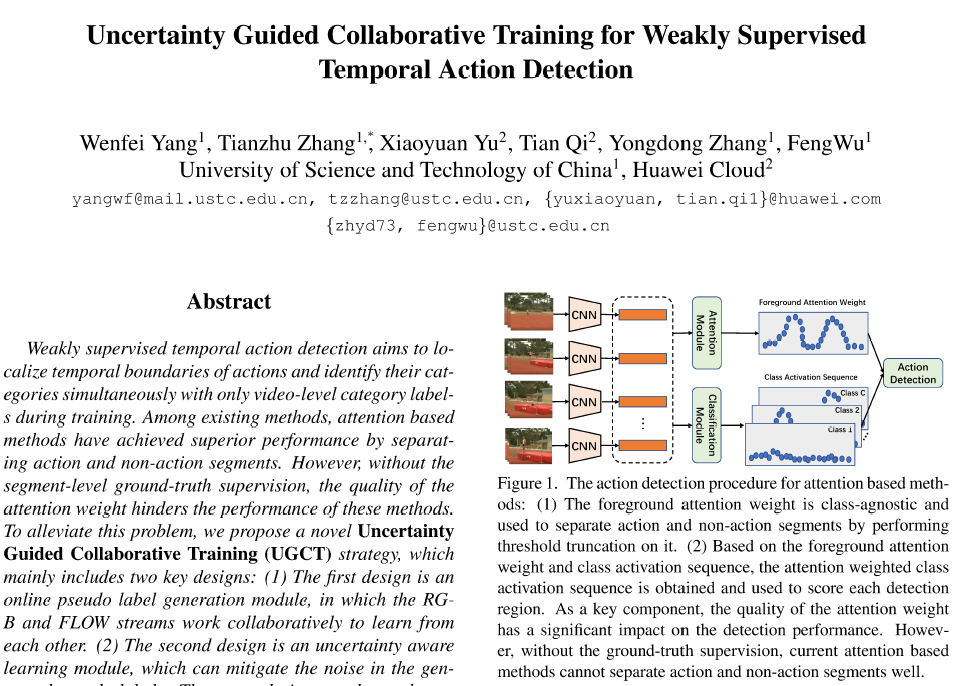 안녕하세요, 이번 주에 제가 준비한 논문은 2021년도 CVPR에 게재된 ‘Uncertainty Guided Collaborative Training for Weakly Supervised Temporal Action Detection'(이하 UGCT) 입니다.