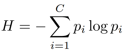 자세한 프로세스 진행과정은 다음과 같다. 기존 방법론과 같이 다음의 수식1으로 예측의 확신도를 이용해 entropy를 측정한다. 즉,개, 고양이 분류 문제에서 개일 확률이 0.3/고양이일 확률이 0.7인 데이터와 개일확률이 0.5 고양이일 확률이 0.7인 데이터가 있다면 후자의 데이터가 더 entropy가 높음으로 가치가 높다.