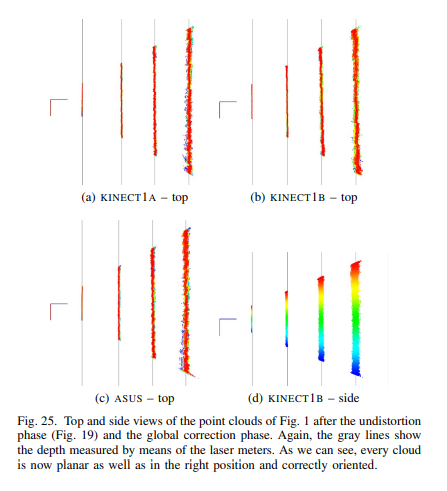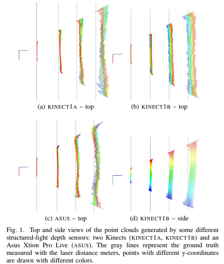 위의 세가지 값들은 Fig 1에서 볼 수 있다시피 멀어질 수 록 오차가 심해지는 공통점을 가지고 있으며, 특히 ‘local distortion’은 같은 동종의 센서임에도 불구하고 나타나는 형태가 달라지는 결과(Fig 1-a,b)를 볼 수 있습니다.