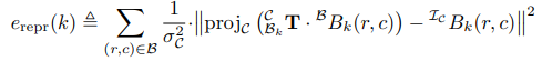 Reprojection error e_{repr}(k) 는 카메라와 체크보드 위치를 중심적으로 보정하기 위한 수식으로 보시면 됩니다.