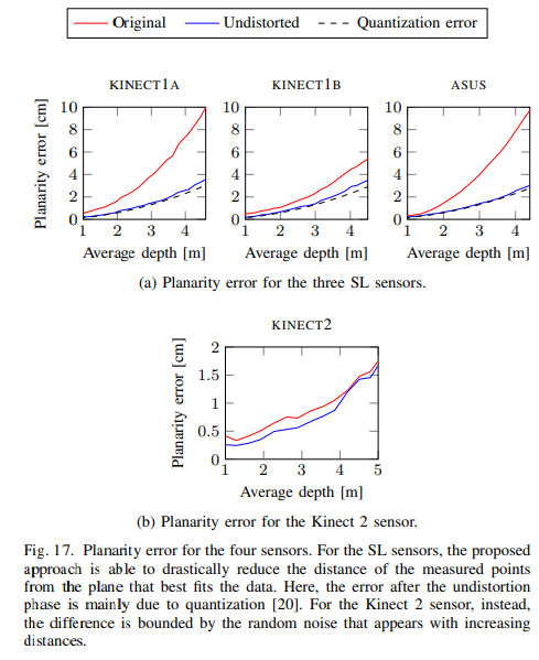 ++ ‘quantization error’ 는 스테레오 추정 알고리즘의 디스패리티의 빈값으로 인해 발생하는 오차로 RGBD 센서를 이용하는 사용자 수준에서는 해결하기 힘든 문제이기에 저자는 해당 에러에 대해서는 해결 불가능이라는 표현을 사용합니다.