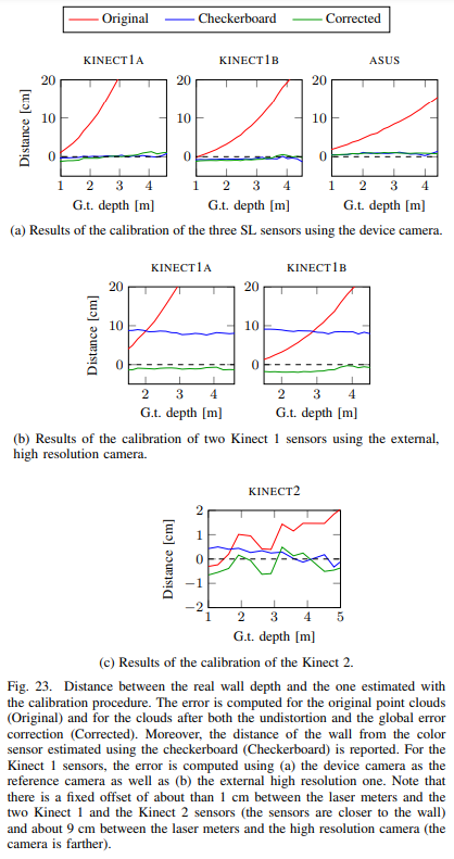 특히, 유명 글로벌 기업사의 제춤인 Intel의 RealSense와 MS의 Kinect는 게임 수준에서의 활용 뿐만이 아니라 로보틱스와 연구 분야에서 제품의 높은 신뢰를 기반으로 많이 활용되고 있습니다. 이러한 명성에도 불구하고 저자는 공장에서 제공되는 캘리브레이션 정보는 게임기 수준에서는 적절하지만 약간의 오차가 안전 문제로 연결되는 로보틱스와 연구 수준에서의 데이터 활용 목적을 위해서는 추가적인 캘리브레이션이 필요하다고 주장합니다.