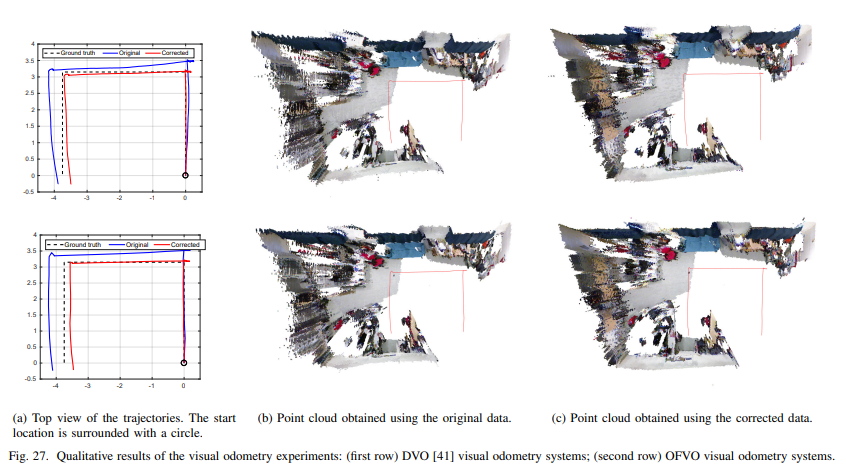 마지막으로 저자는 RGBD의 보정이 다른 태스크에서의 정확도에 어떠한 영향을 끼치는지 보이기 위해 VO 태스크에서의 실험을 진행하였습니다. 보정된 결과에서는 거의 2배 가까운 성능 차이를 보여줌으로써 보정과 해당 알고리즘의 효과를 입증합니다.