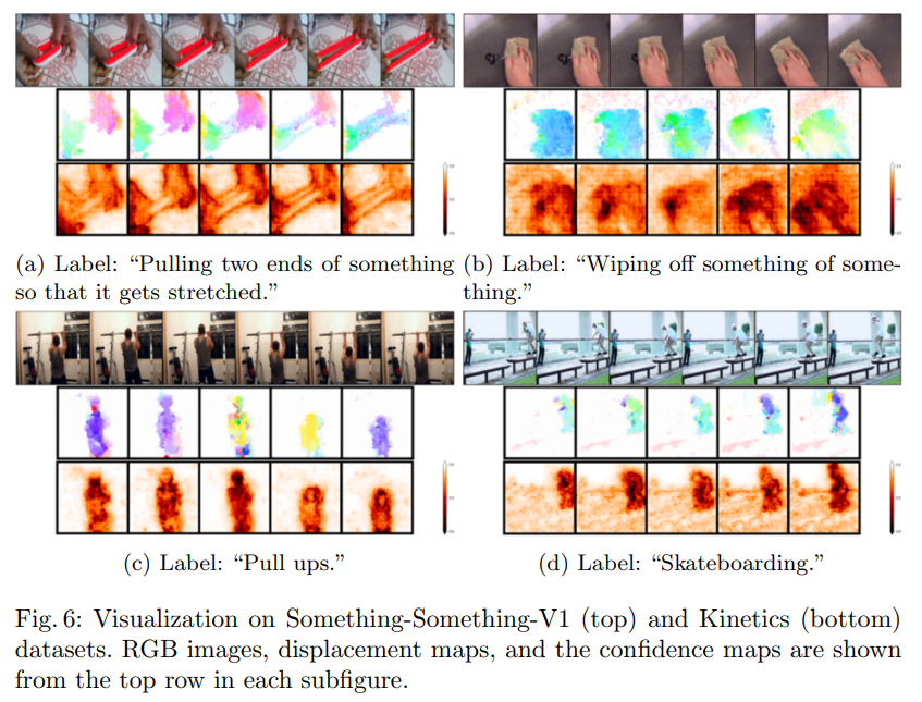 마지막으로는 displacement map과 confidence map에 대한 정량적인 결과인데요. Optical flow로 뽑은 것 같이 움직임이 있는 영역을 잘 추출한 것을 볼 수 있습니다.