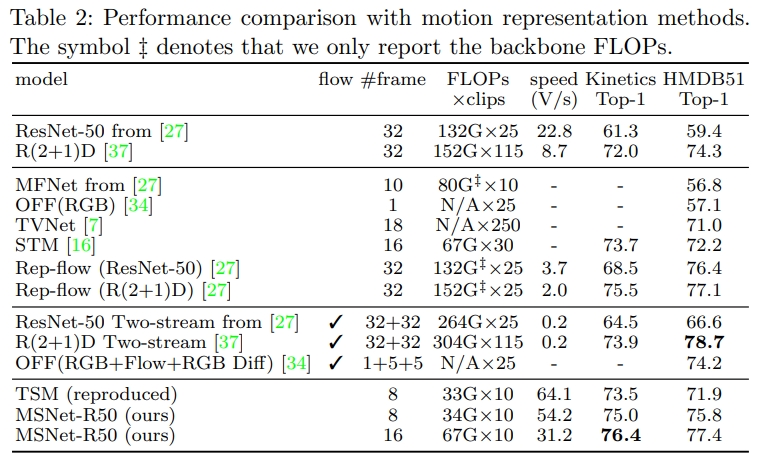 Resnet 백본의 세번째 stage에 MS module을 끼워넣고, 계산한 motion feature를 element-wise addition 해줍니다. 이렇게 간단하게 이 모듈을 여러 백본에 붙일 수 있다고 하네요.